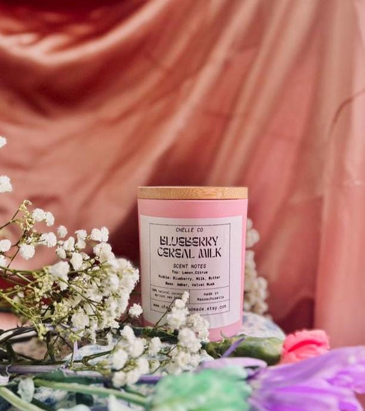 Blueberry Cereal Milk Candle, 7oz. Toxin-Free Coconut Apricot Wax – Lemon, Butter & Amber Scent – Handpoured in Small Batches