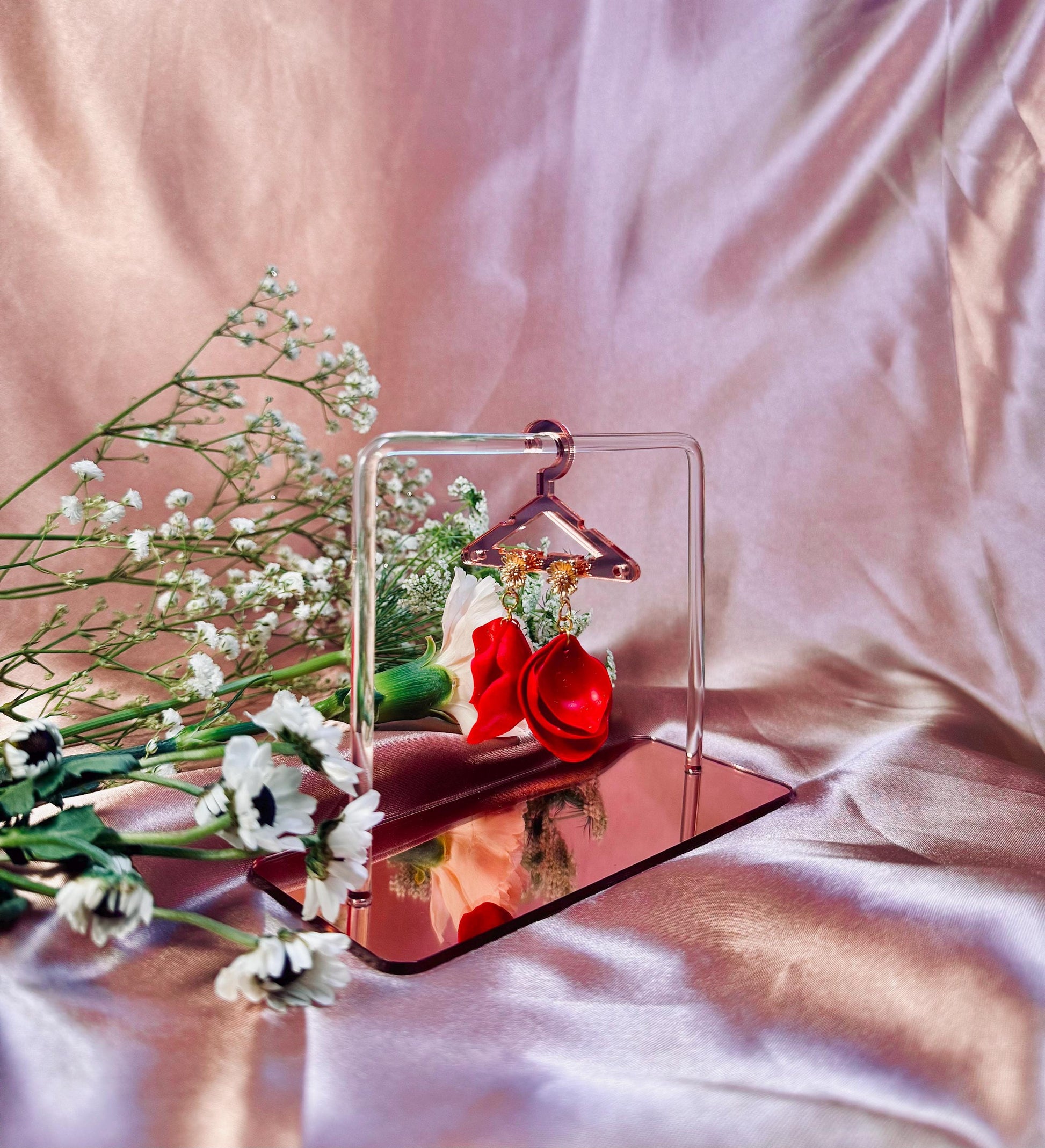 Bold and sculptural, these red petal earrings feature layered floral designs that bloom as you move. Handmade with hypoallergenic findings and uniquely one of a kind.