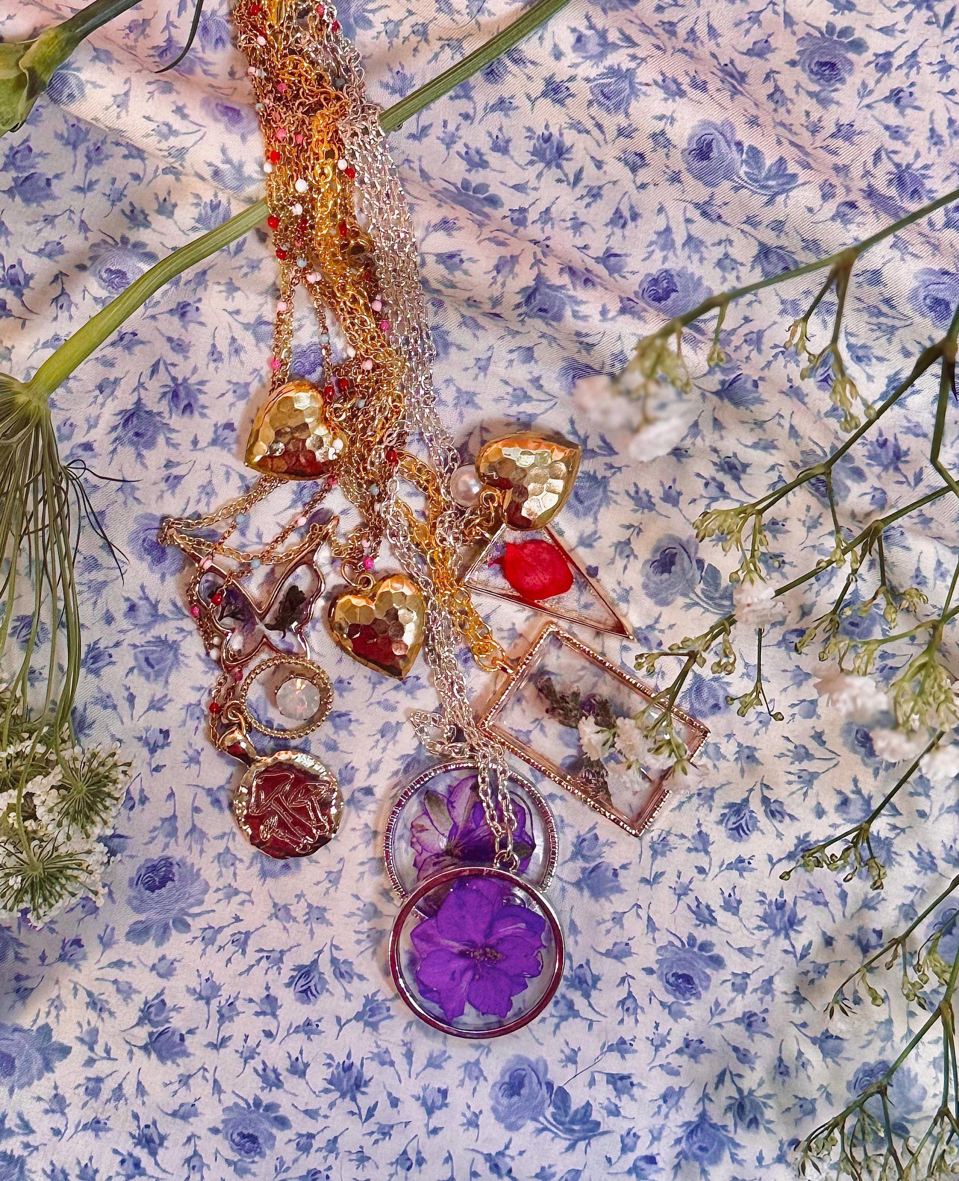 Resin Dried Flower Necklace | Real Pressed Floral Pendant | Custom Length Chain | Handmade Nature Jewelry Gift